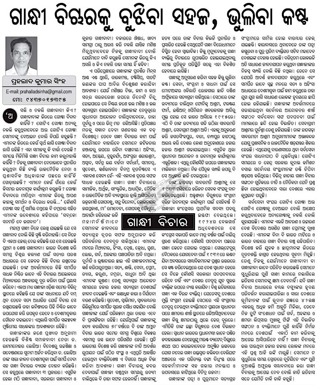 Article on Mahatma Gandhi